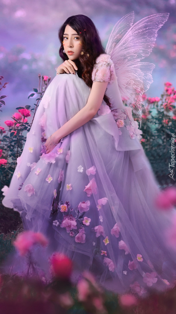 Edytor tapety: Dziewczyna ze skrzydłami wśród róż
