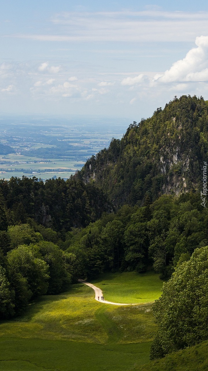 Edytor tapety: Droga pod zalesioną górą