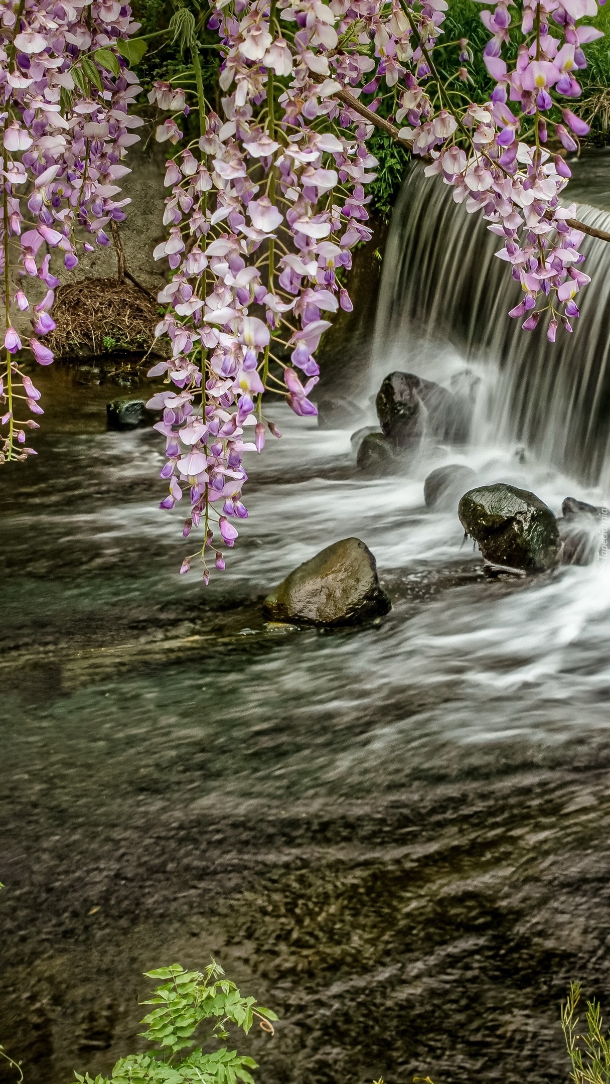 Edytor tapety: Glicynie nad wodospadem