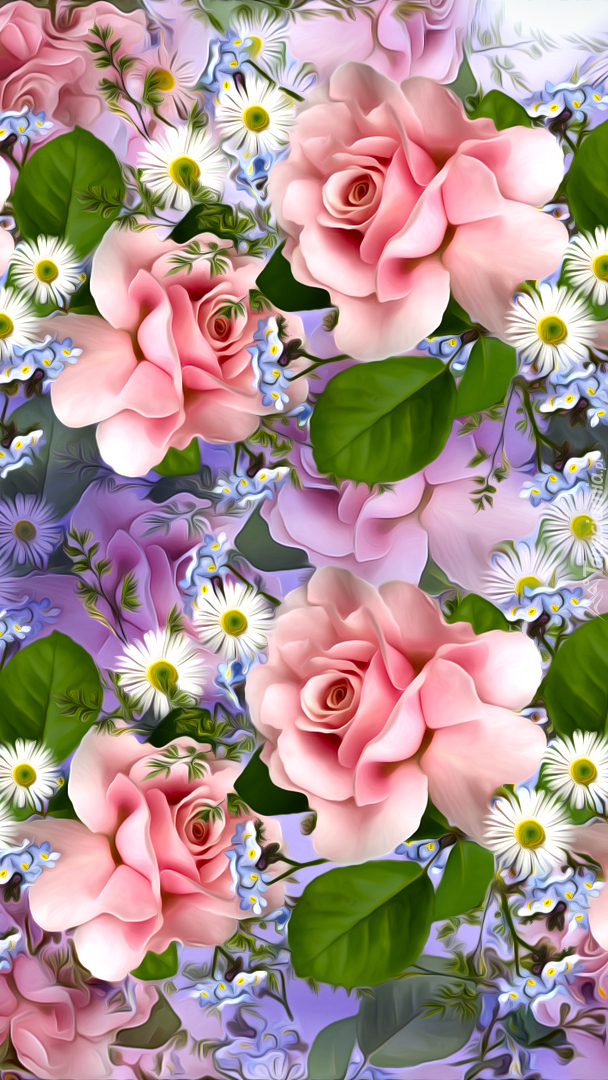 Edytor tapety: Różowe róże w 2D