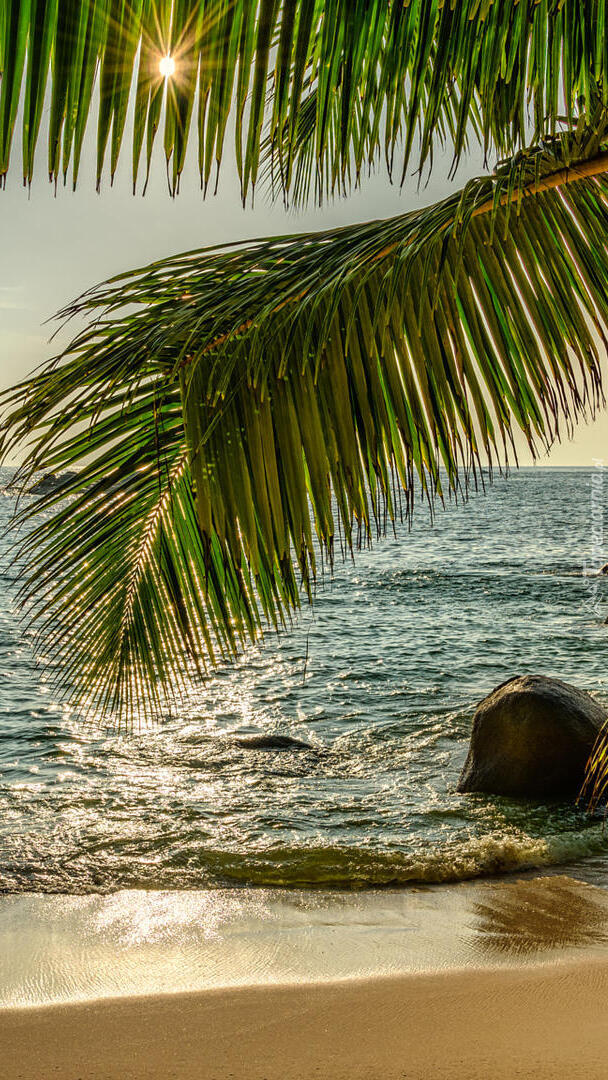 Edytor tapety: Promienie słońca w liściach palmy