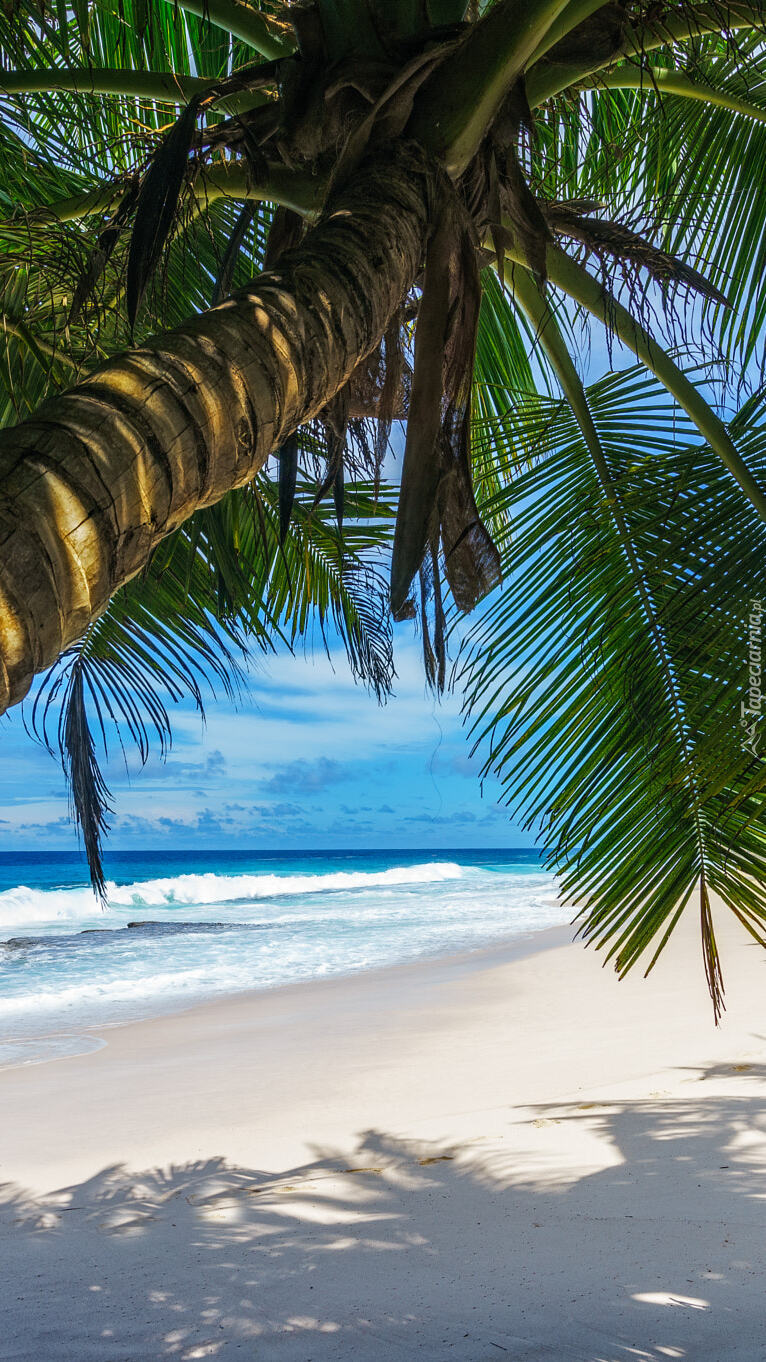 Edytor tapety: Pochylona palma na morskiej plaży
