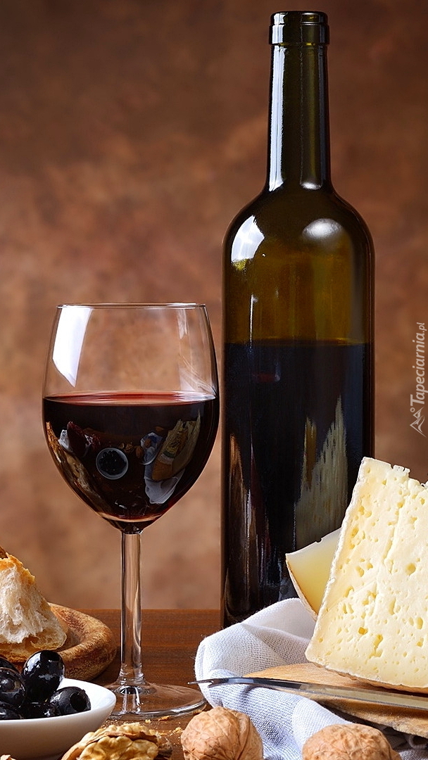 Edytor tapety: Czerwone wino w kieliszku i butelce