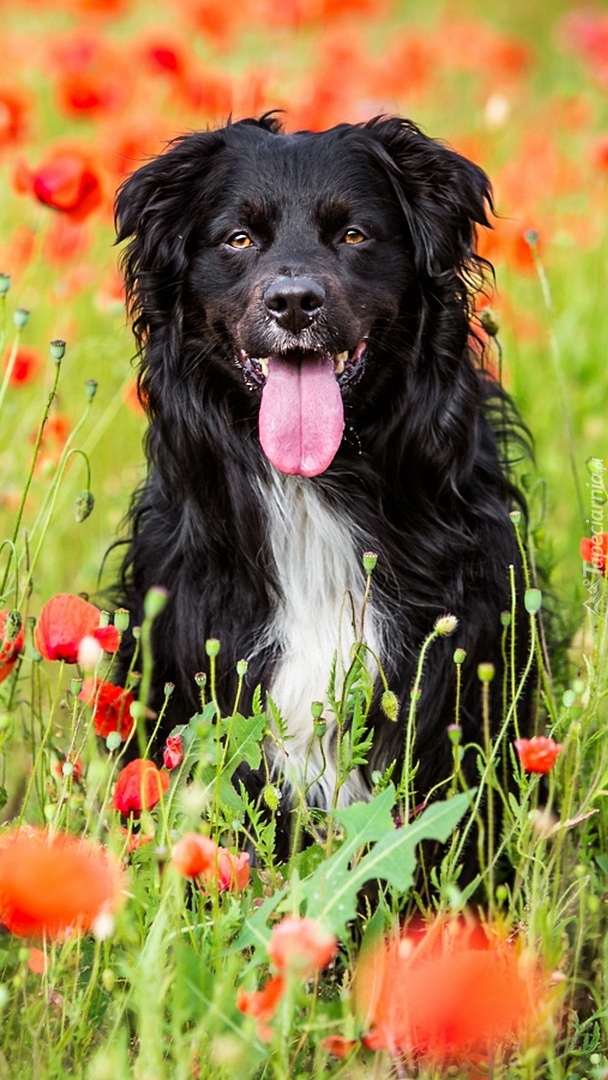 Edytor tapety: Pies na łące maków