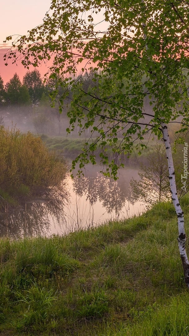 Edytor tapety: Brzoza nad zamgloną rzeką Uzola