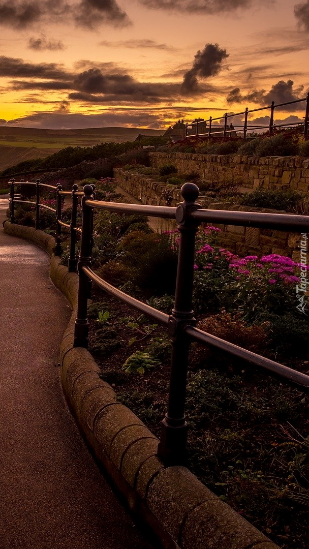 Edytor tapety: Rabatka z kwiatami przy barierkach