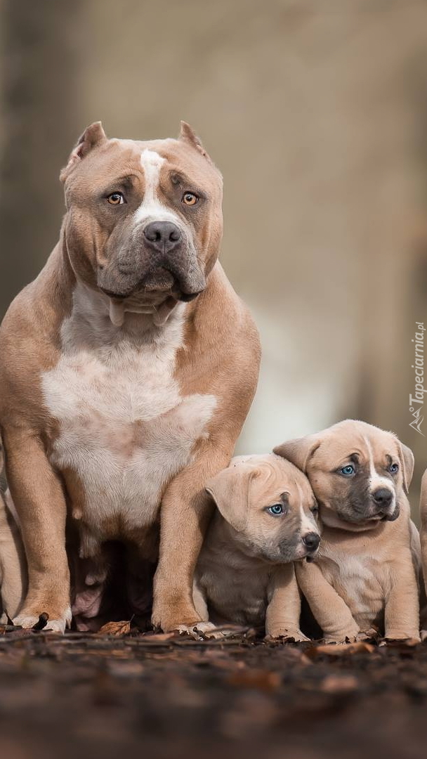 Edytor tapety: Suka i dwa szczeniaki american bully
