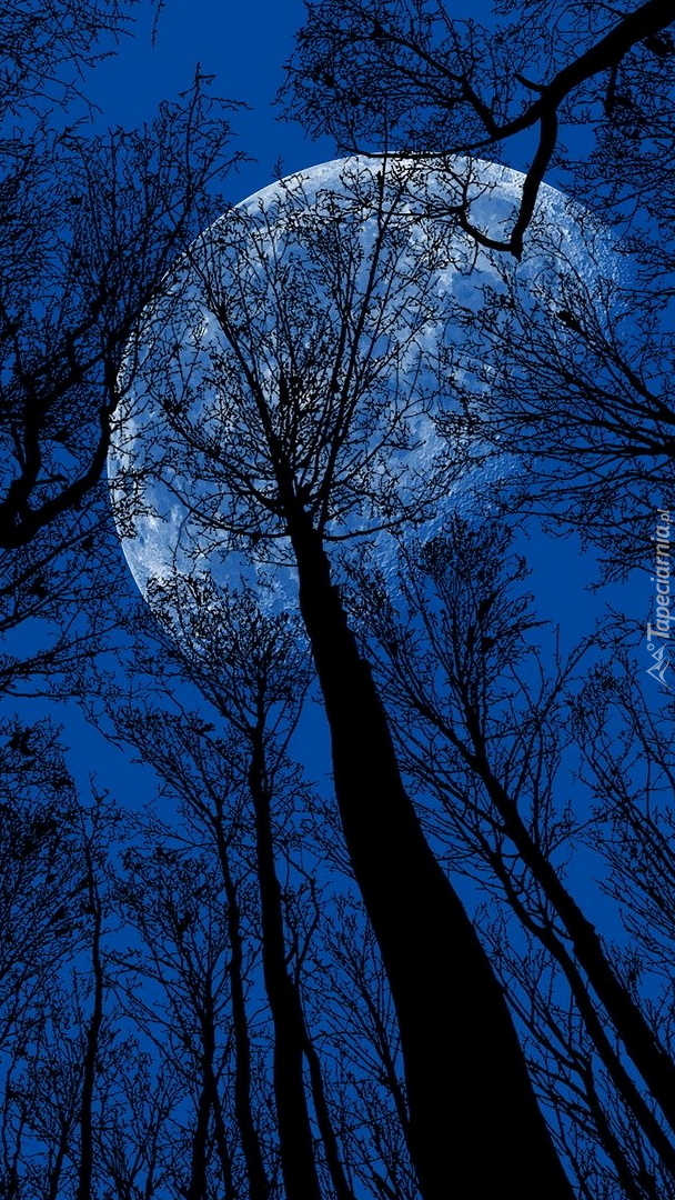 Edytor tapety: Wierzchołki drzew na tle księżyca