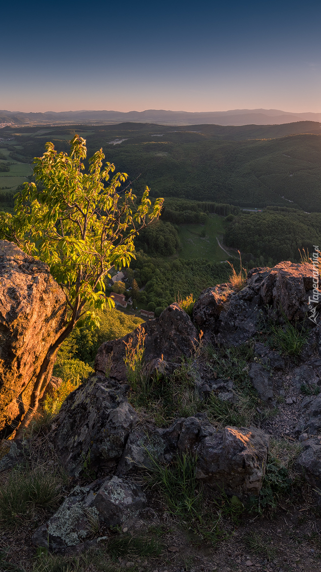 Edytor tapety: Drzewo na skale w górach