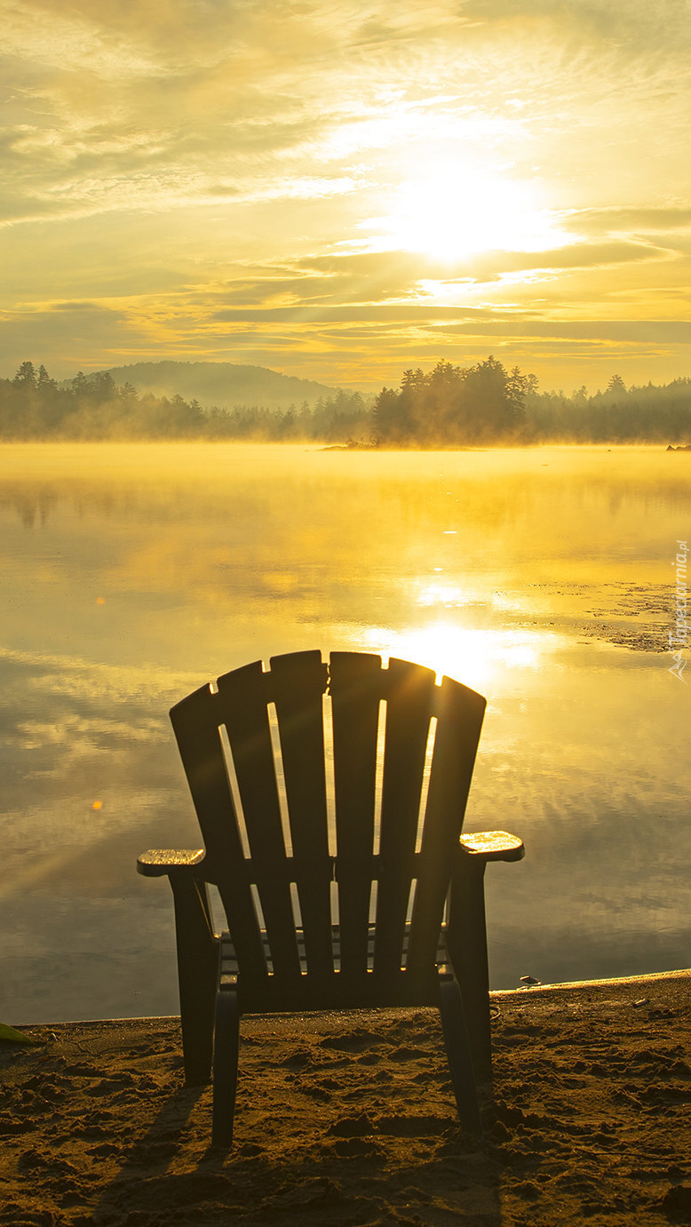 Edytor tapety: Krzesło nad brzegiem jeziora