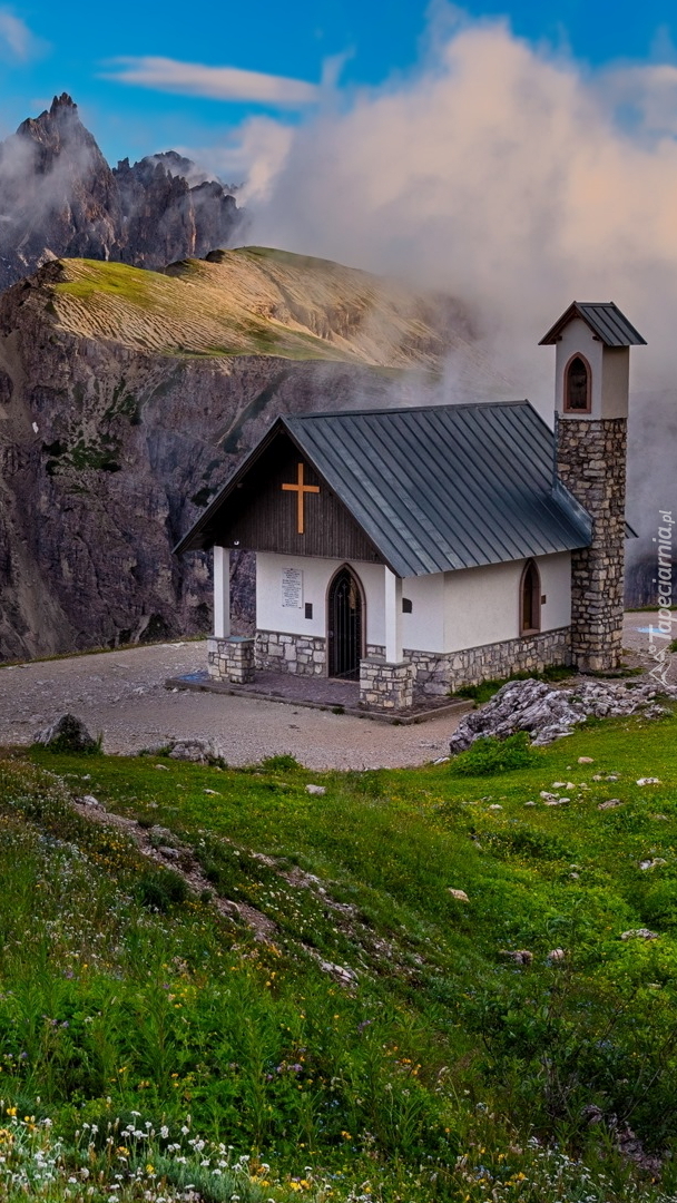 Edytor tapety: Kapliczka na tle Dolomitów