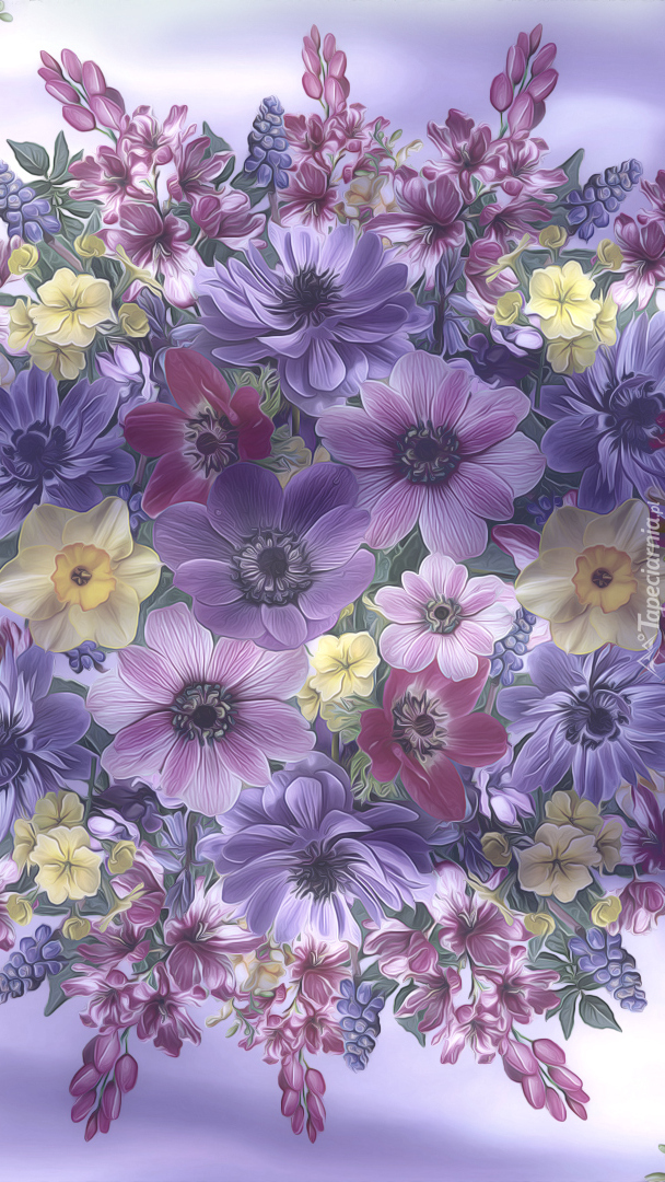 Edytor tapety: Różnokolorowe kwiaty w grafice