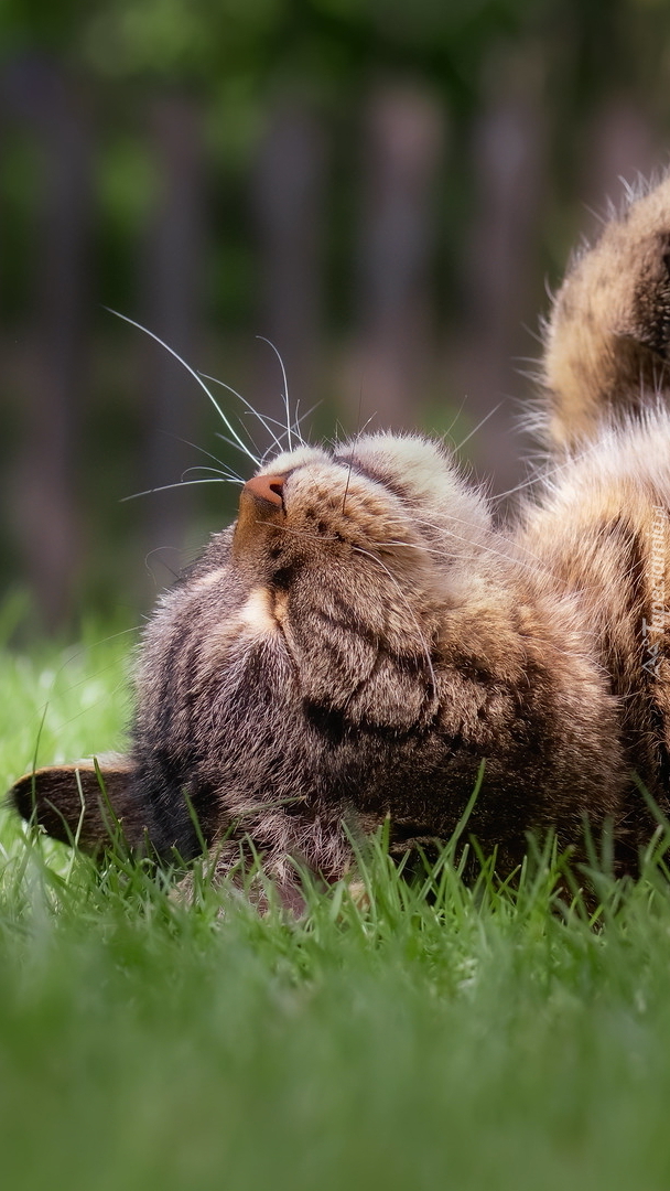 Edytor tapety: Kot śpiący na trawie