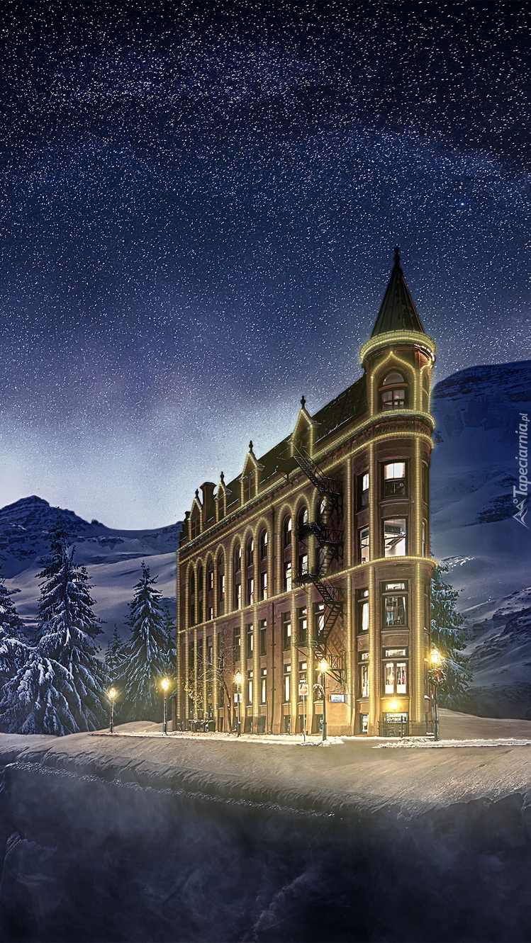 Edytor tapety: Budynek pod gwiaździstym niebem w grafice