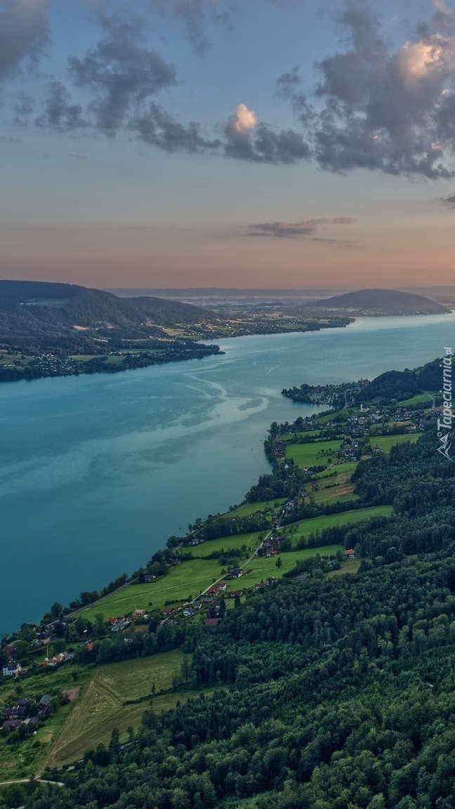Edytor tapety: Domy i lasy nad jeziorem Attersee