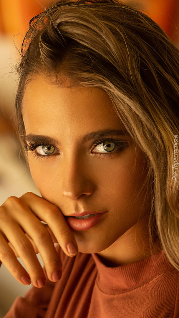 Edytor tapety: Kobieta z dłonią przy twarzy