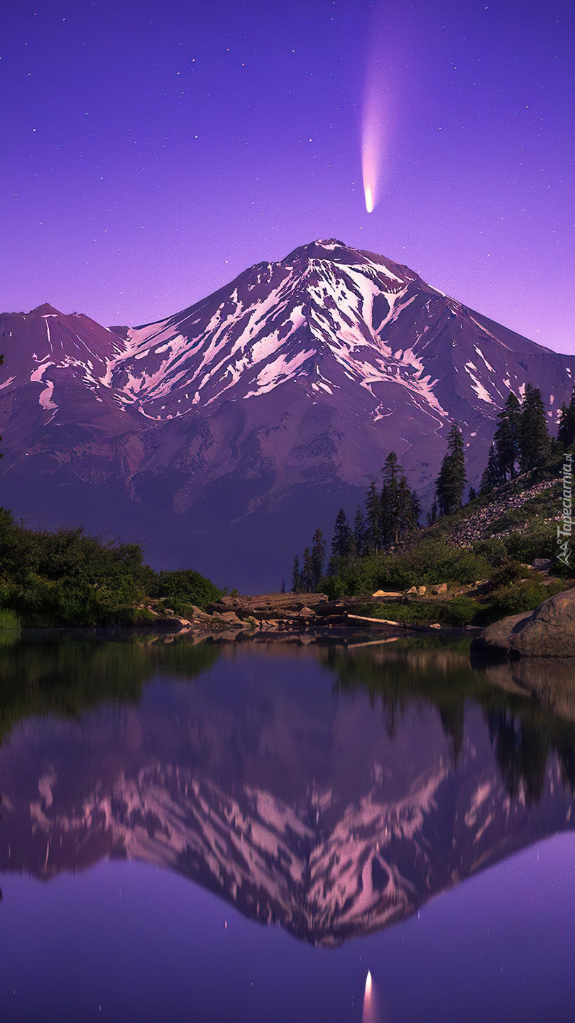 Edytor tapety: Kometa nad stratowulkanem Mount Shasta