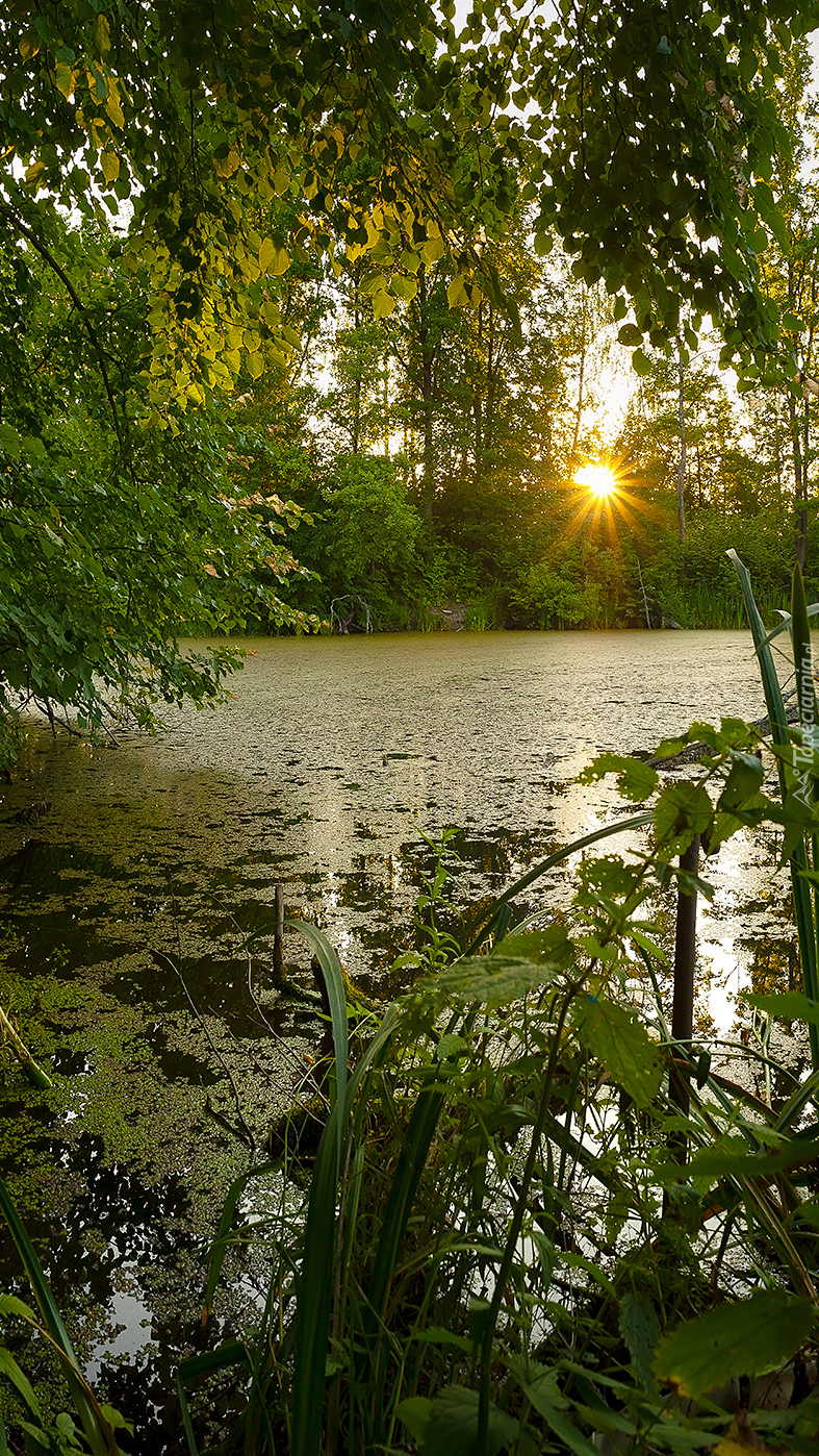Edytor tapety: Drzewa nad zarośniętym stawem