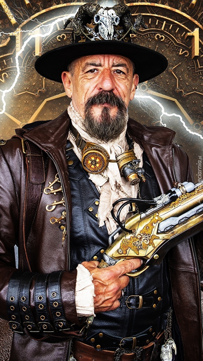Edytor tapety: Brodaty mężczyzna z pistoletem