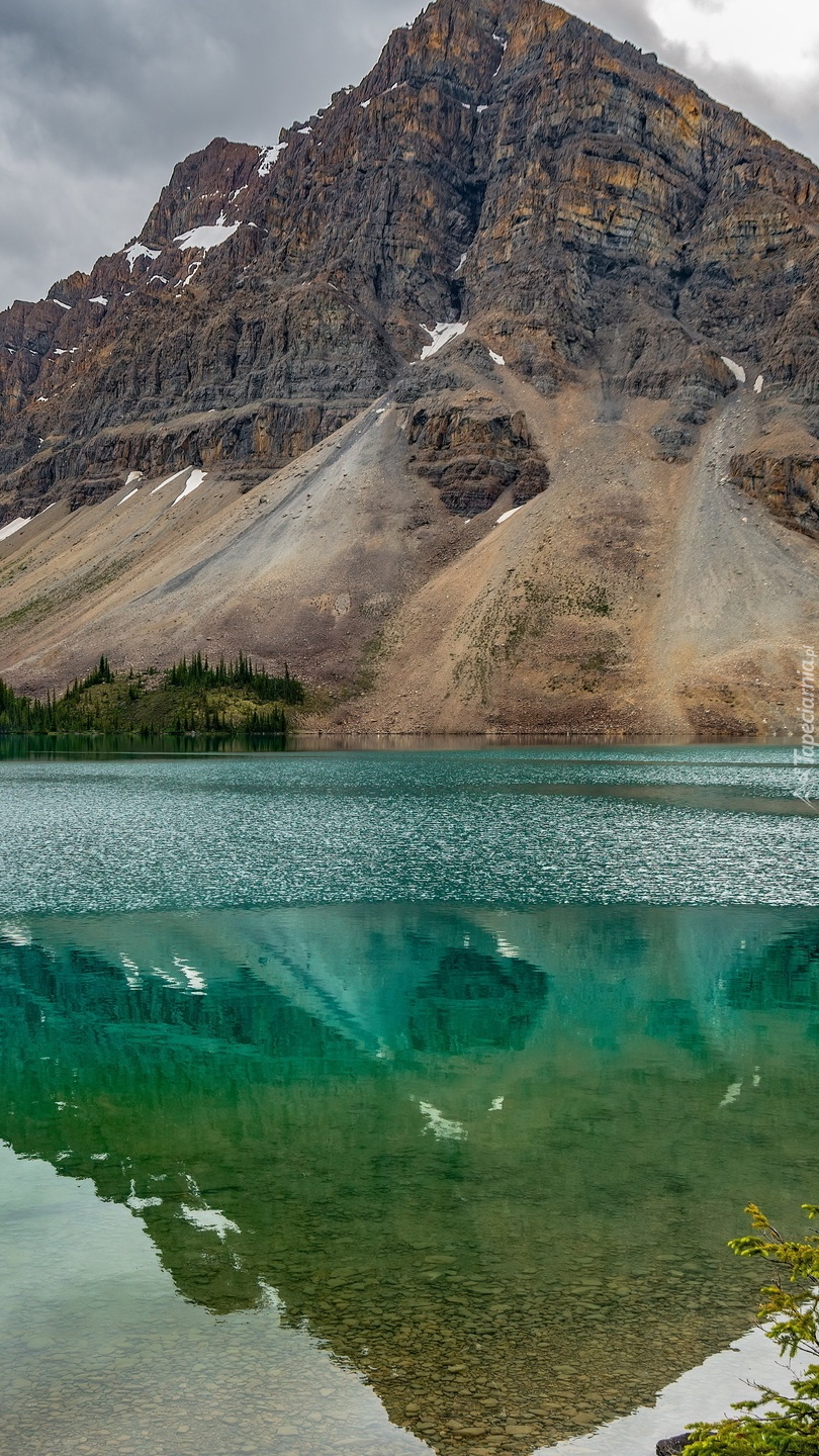 Edytor tapety: Odbicie góry Crowfoot Mountain w jeziorze