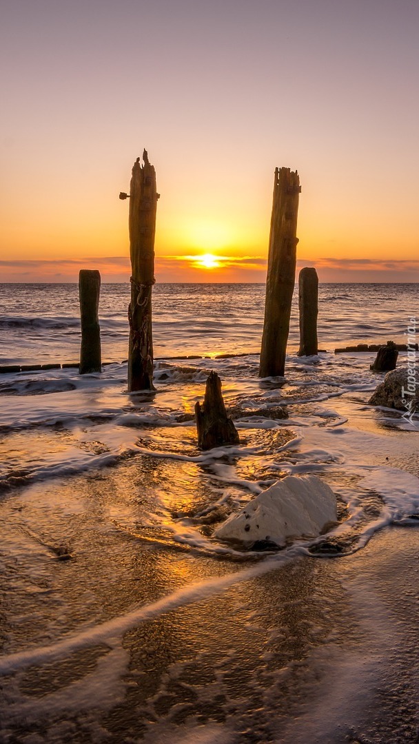 Edytor tapety: Fale i paliki na morskiej plaży