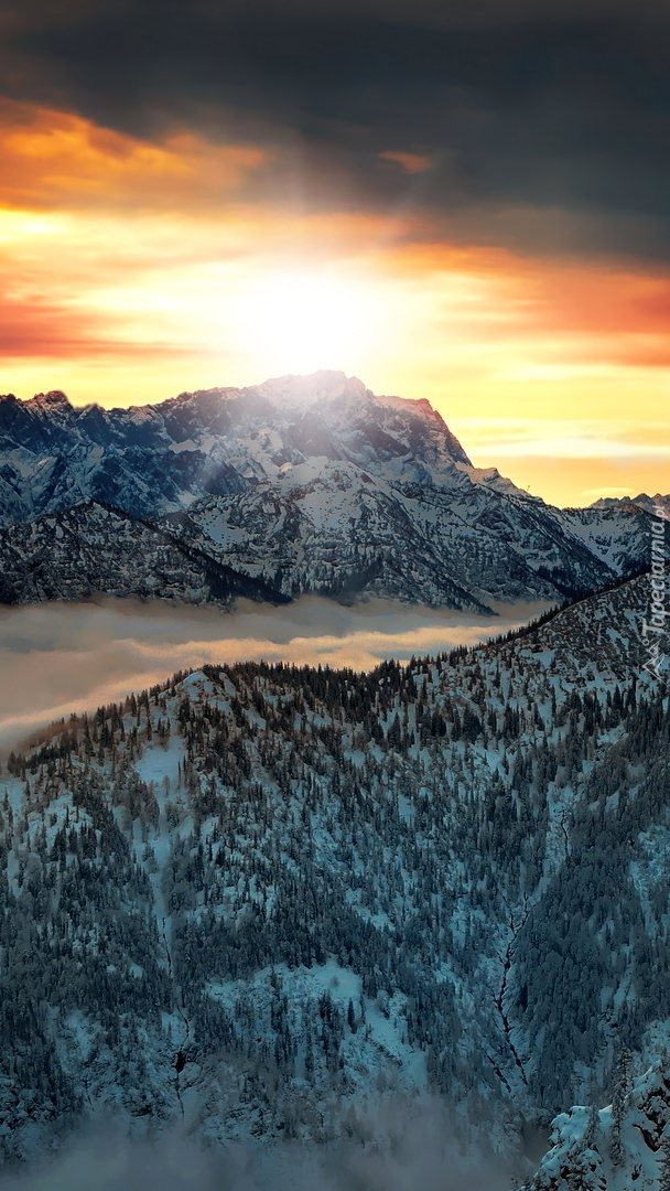 Edytor tapety: Zachód słońca nad górami