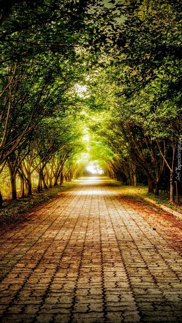 Edytor tapety: Drzewa przy brukowanej drodze