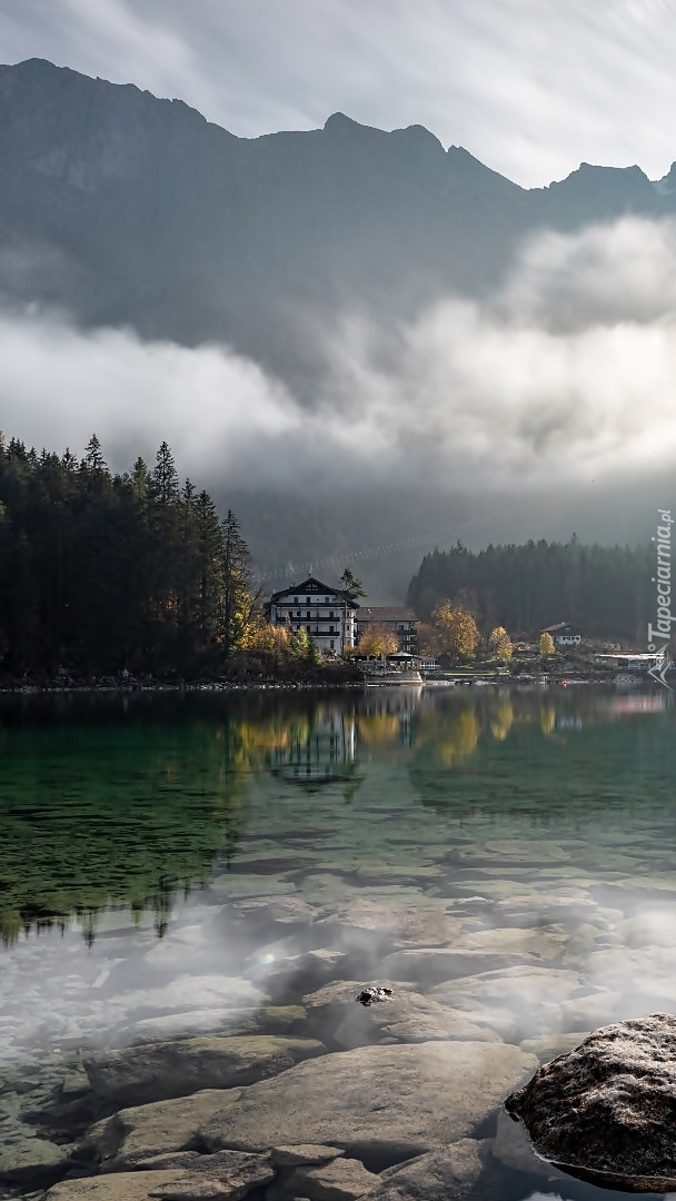 Edytor tapety: Dom przy lesie nad jeziorem Eibsee