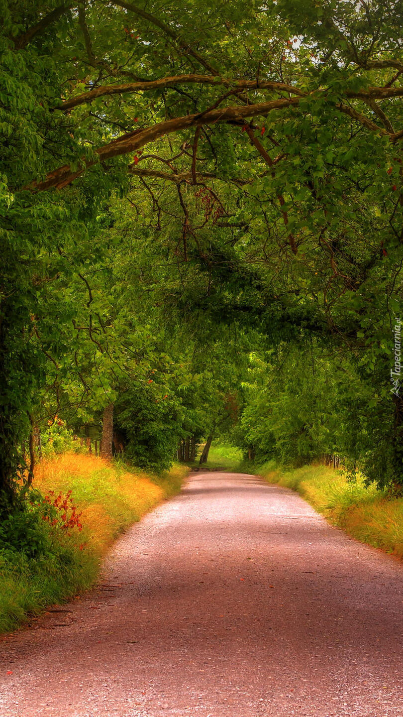 Edytor tapety: Zielone drzewa przy drodze