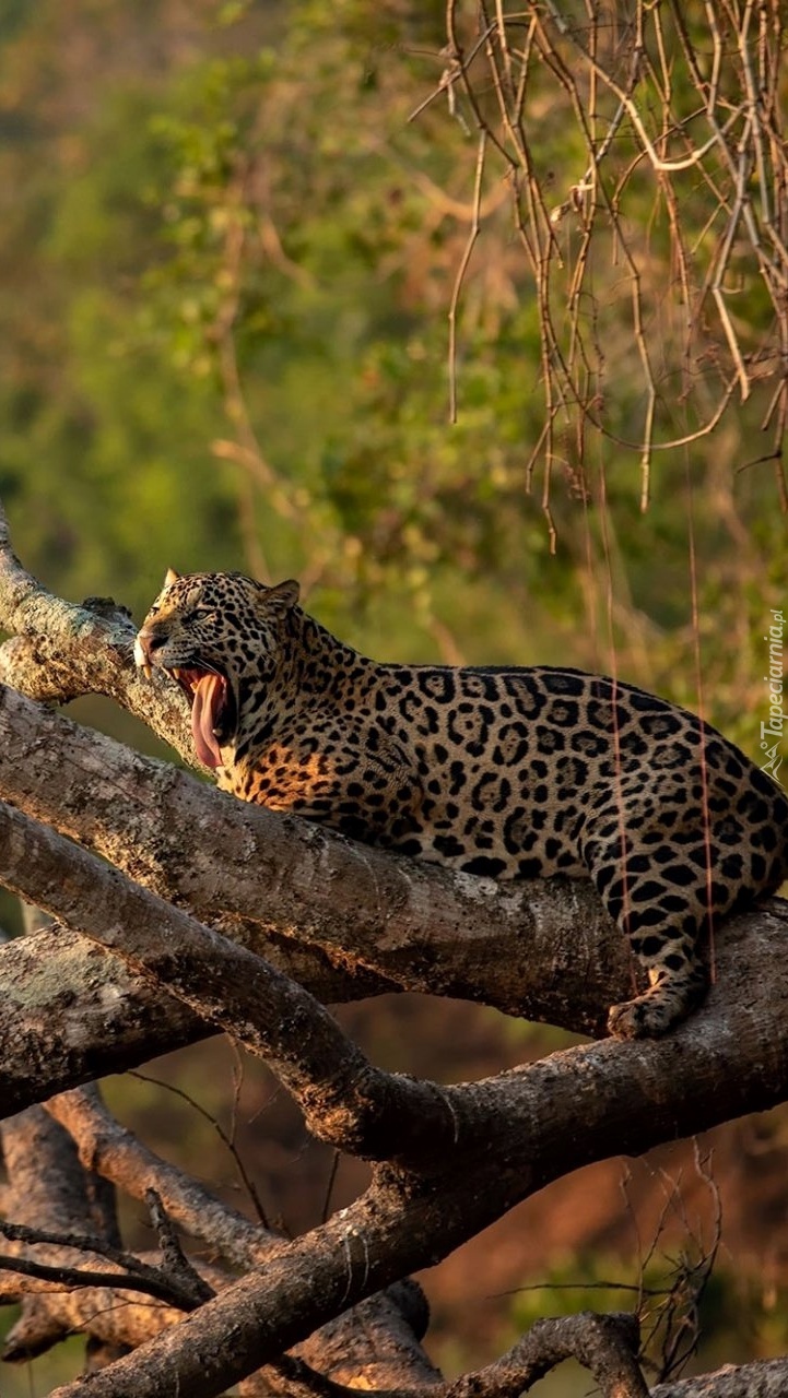 Edytor tapety: Lampart na suchym konarze