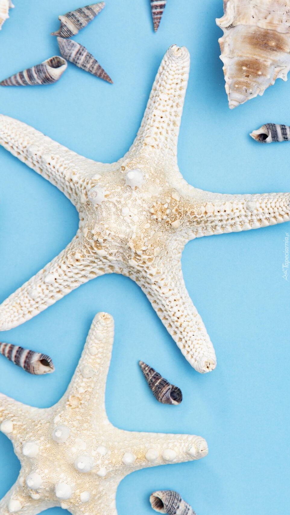 Edytor tapety: Rozgwiazdy i muszelki na niebieskim tle