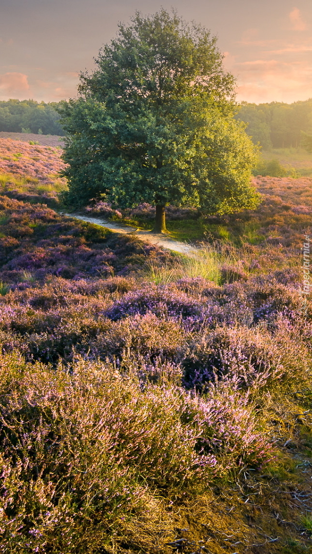 Edytor tapety: Drzewo na wrzosowisku obok ścieżki