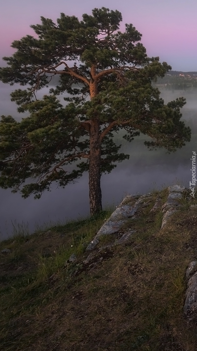 Edytor tapety: Sosna na wzgórzu w górach