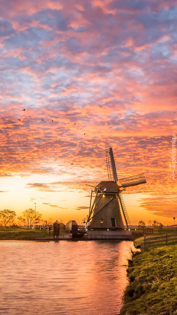 Edytor tapety: Wiatrak Meerburger Mill o wschodzie słońca