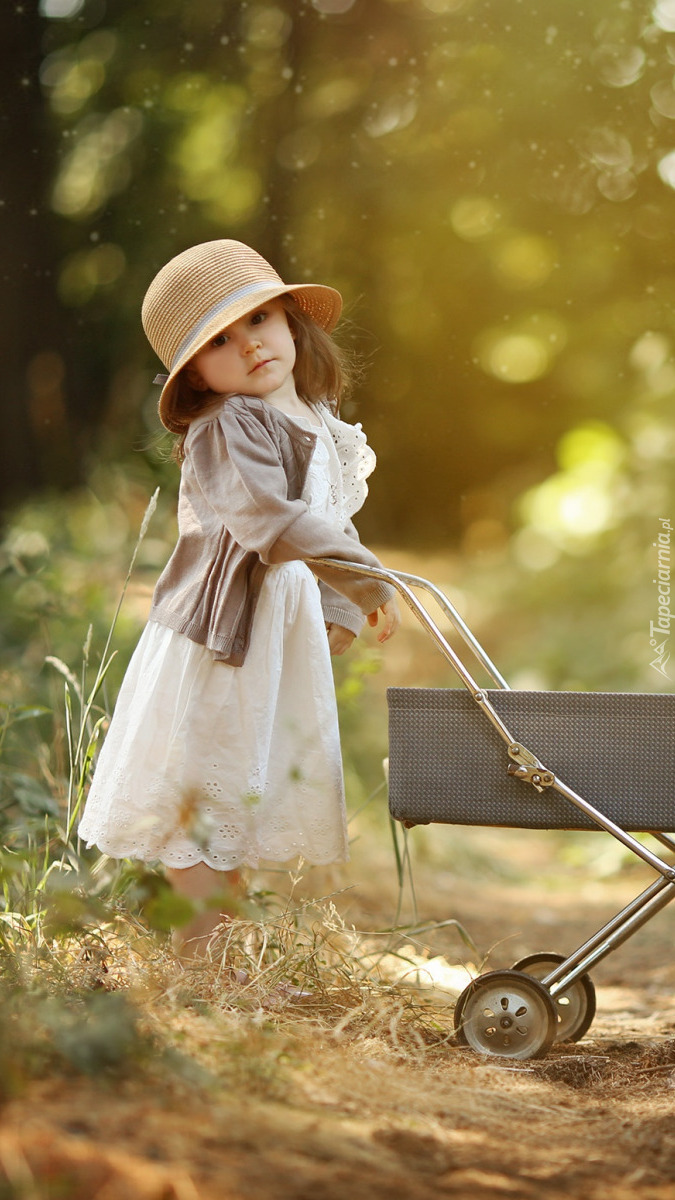 Edytor tapety: Dziewczyna w kapeluszu z wózkiem