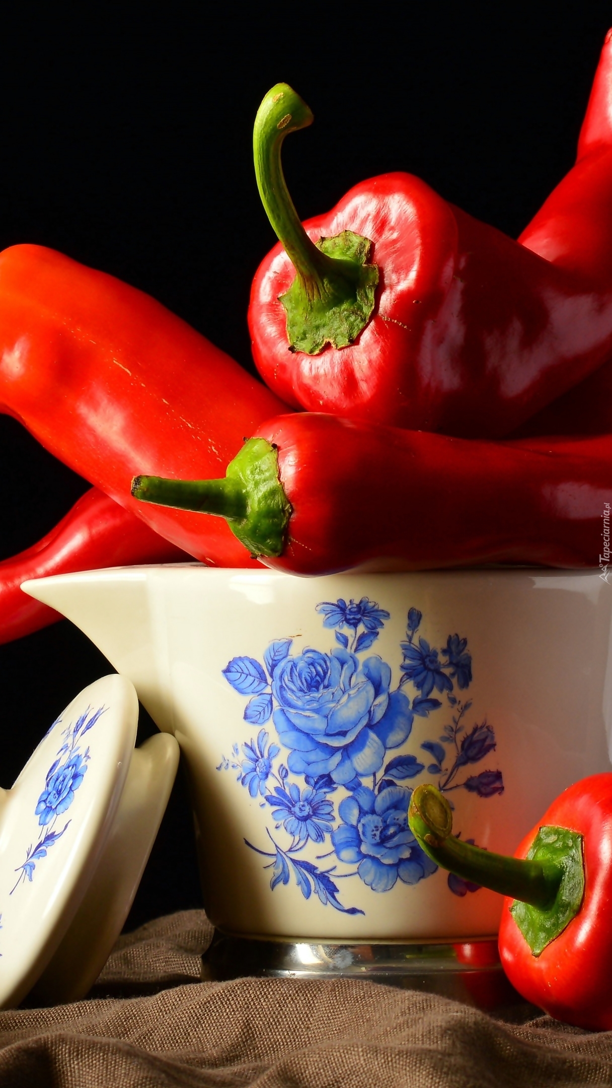Edytor tapety: Czerwone papryki w dzbanku
