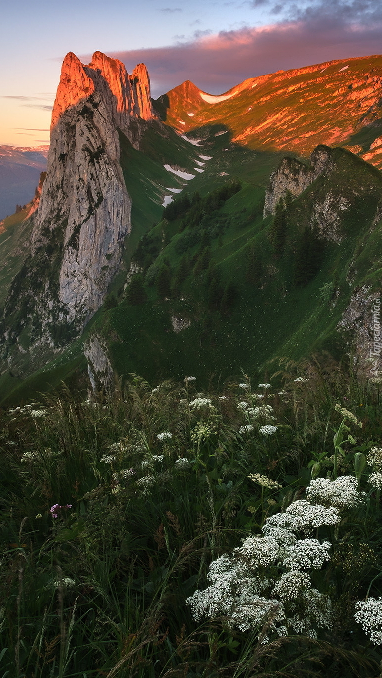 Edytor tapety: Rozświetlone szczyty Appenzeller Alpen w Szwajcarii