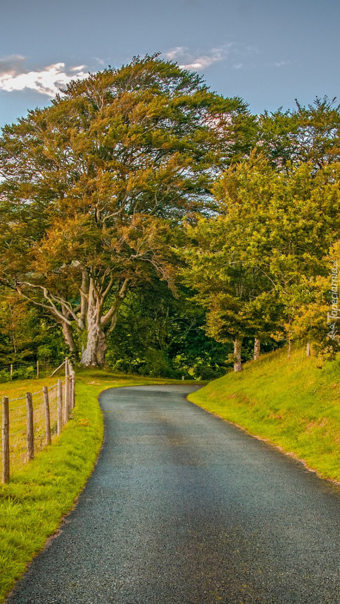 Edytor tapety: Droga wzdłuż ogrodzonej łąki