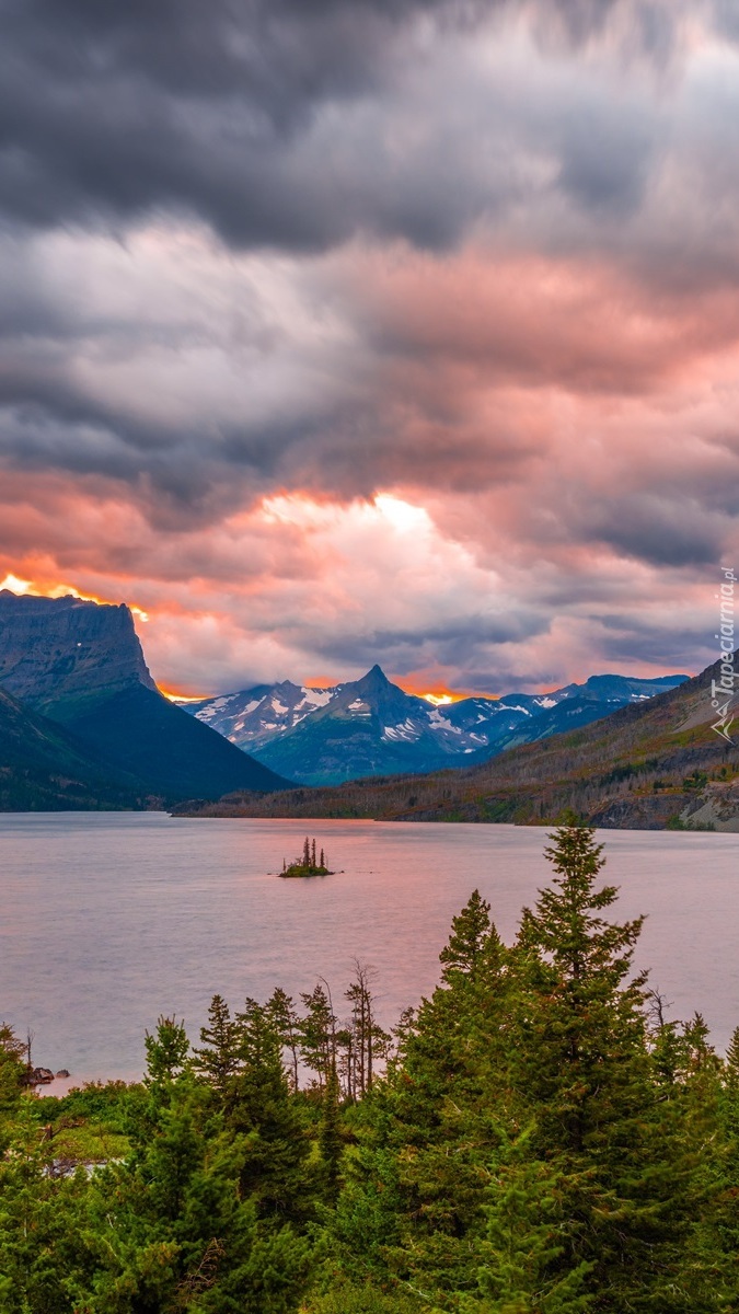 Edytor tapety: Drzewa na jeziorem Saint Mary Lake