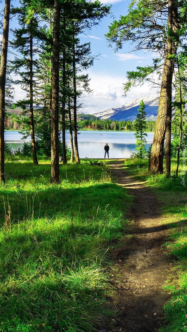 Edytor tapety: Ścieżka w lesie nad jeziorem
