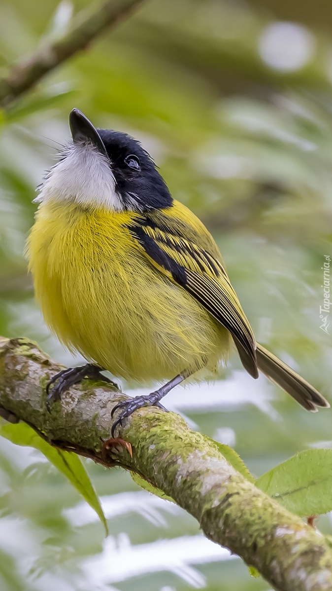 Edytor tapety: Czarno-żółty ptak na gałązce
