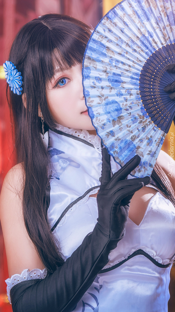 Edytor tapety: Azjatka z wachlarzem