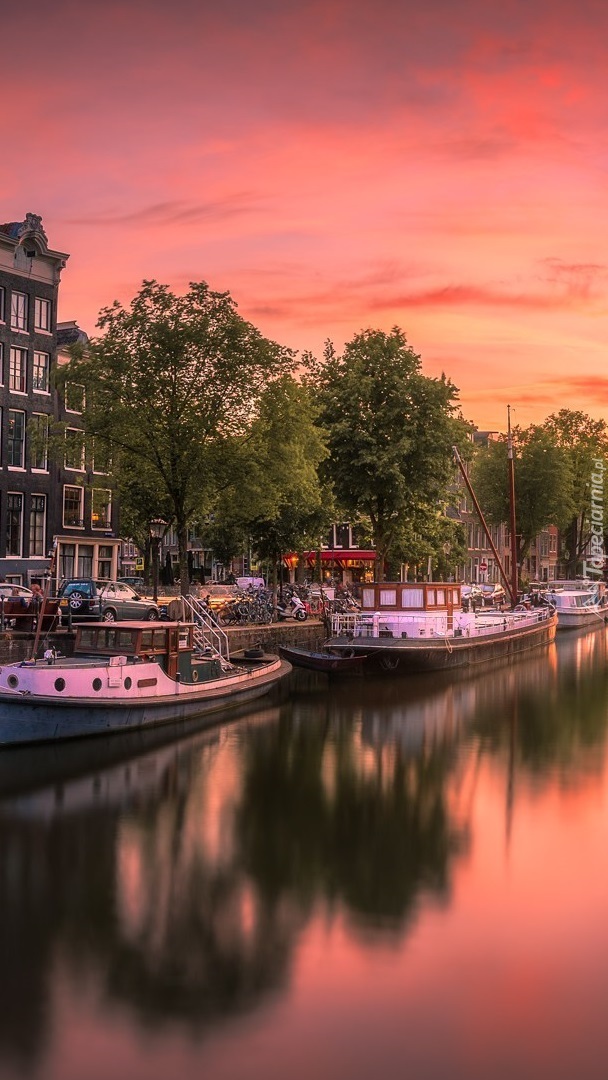 Edytor tapety: Łódki na kanale w Amsterdamie