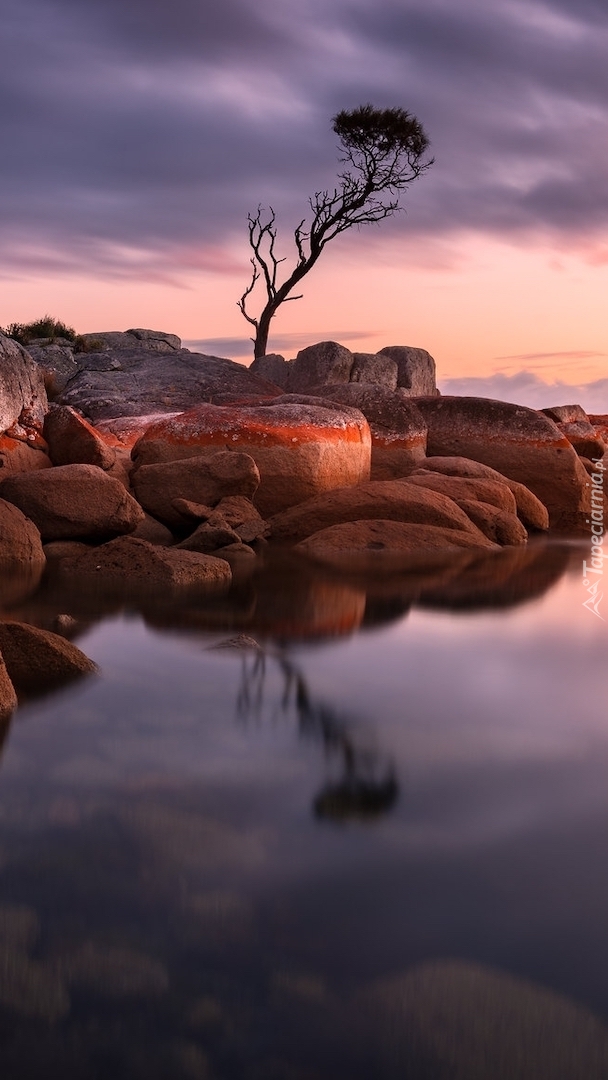 Edytor tapety: Drzewo na skałach nad morzem