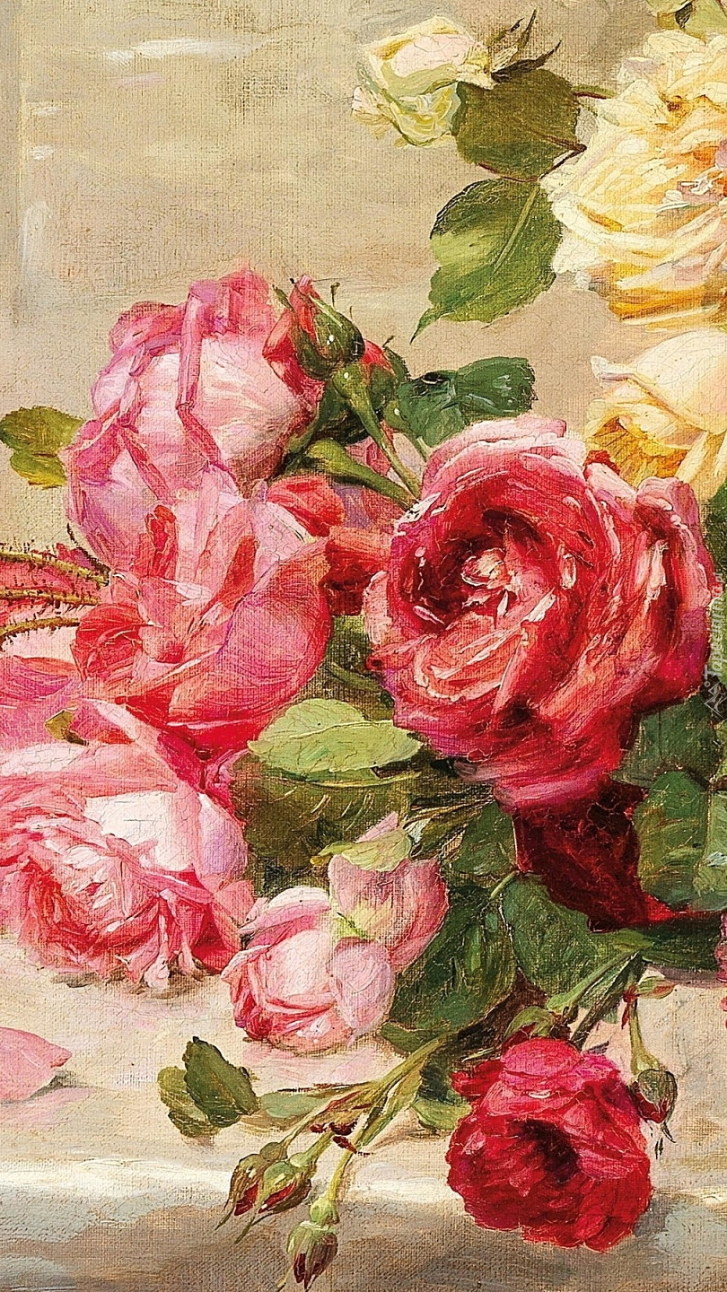 Edytor tapety: Bukiet róż na obrazie Dominique Roziera
