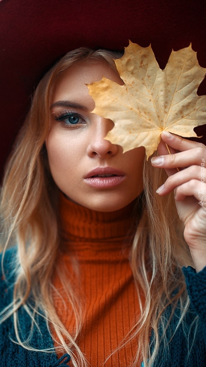 Edytor tapety: Kobieta z liściem klonu
