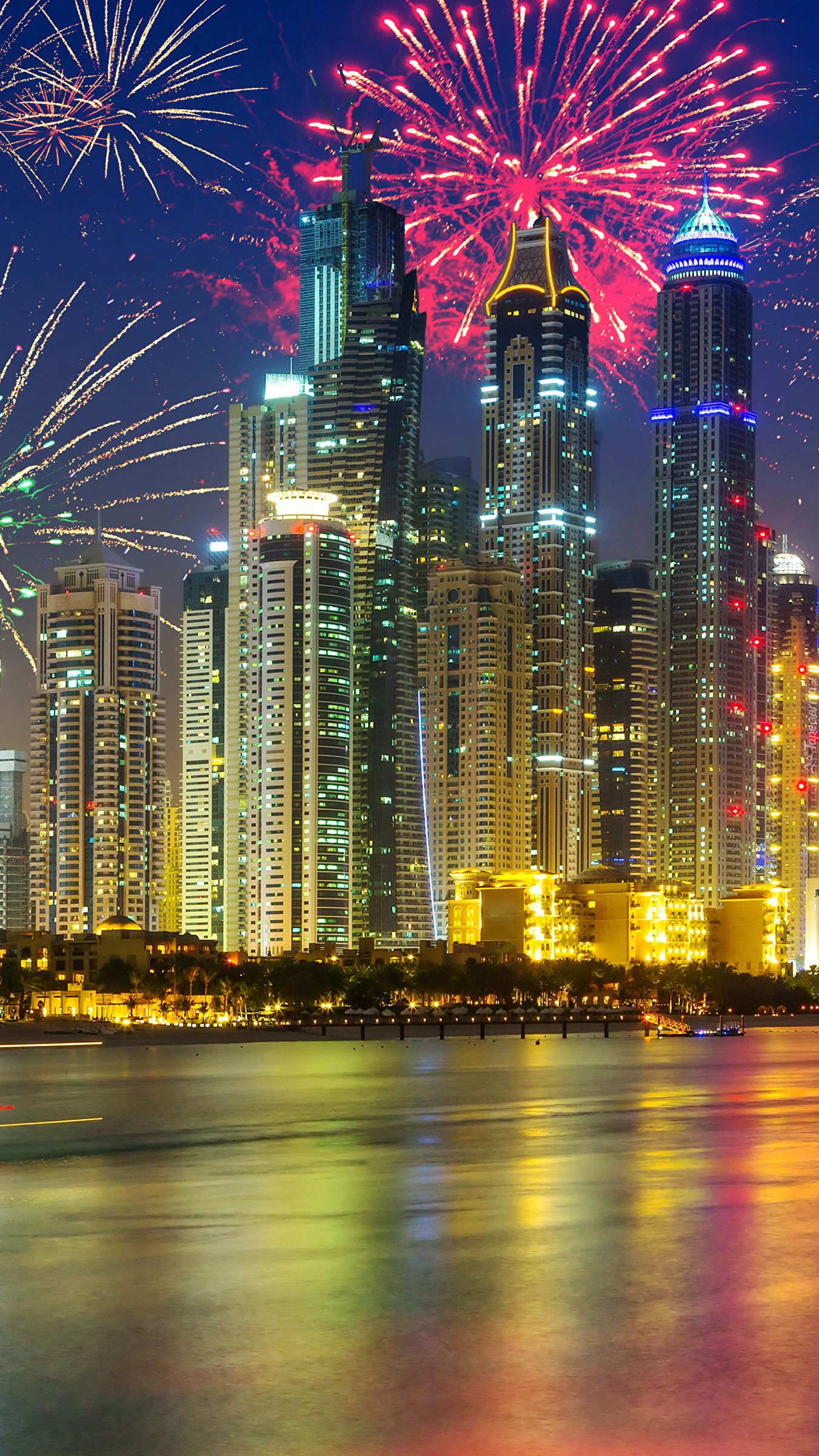 Edytor tapety: Fajerwerki nad wieżowcami w Dubaju