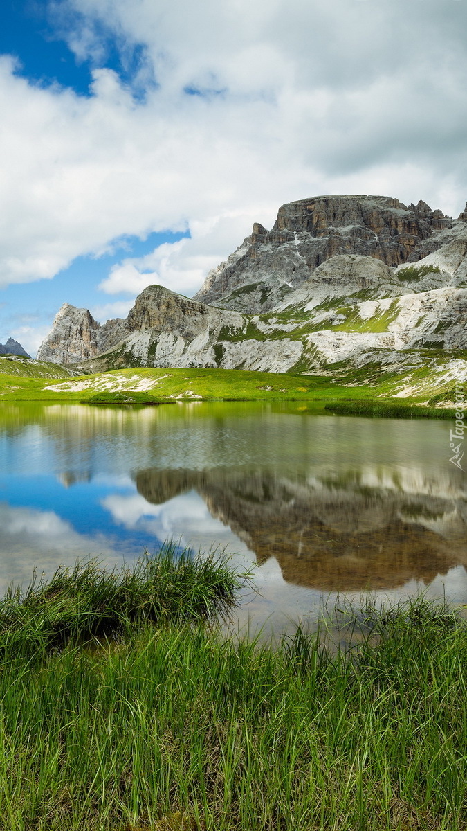 Edytor tapety: Trawy nad jeziorem w górach