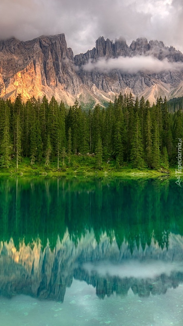 Edytor tapety: Drzewa nad jeziorem Lago di Carezza