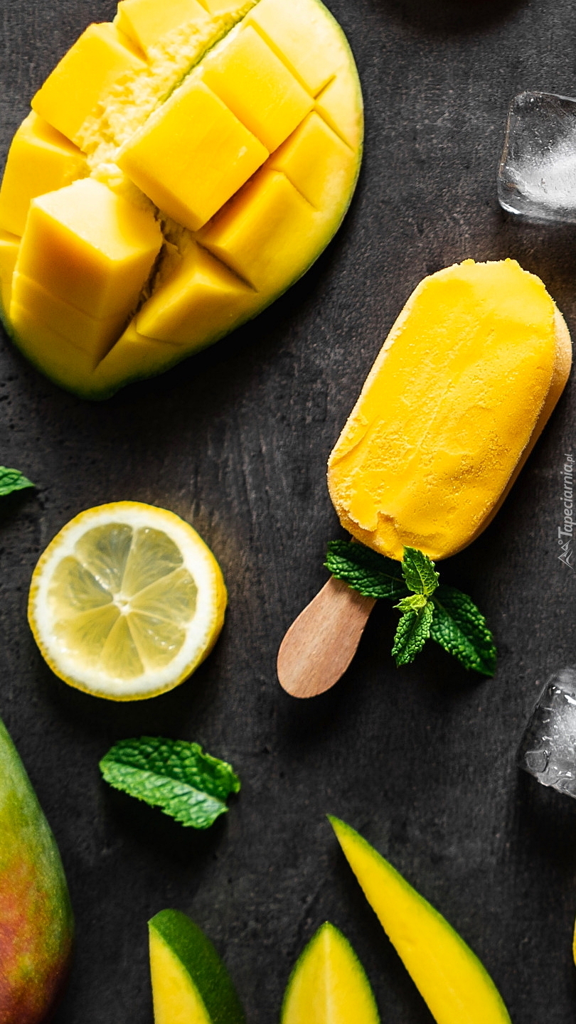 Edytor tapety: Lody obok mango i plasterka cytryny